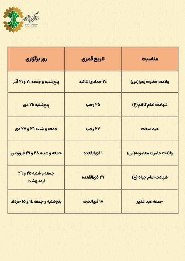 برای مشاهده مناسبتهای مد نظر و ثبتنام، میتوانید از طریق پیوند زیر اقدام فرمایید.